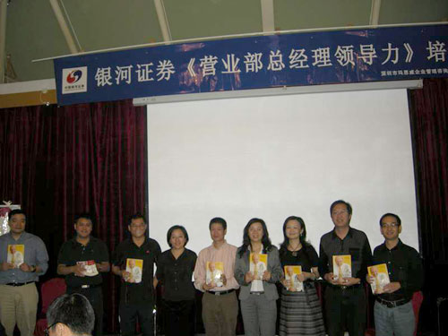 2008年11月10日,由深圳市玛思威企业管理咨询有限公司首席培训师朱俐安教授主讲,为期3天的中国银河证券股份有限公司《营业部总经理领导力》培训班在深圳圆满结束。朱教授以她卓越精准的表达方式、严谨的逻辑思维感染着在场的每一位参训人员,使得学员满载而归。