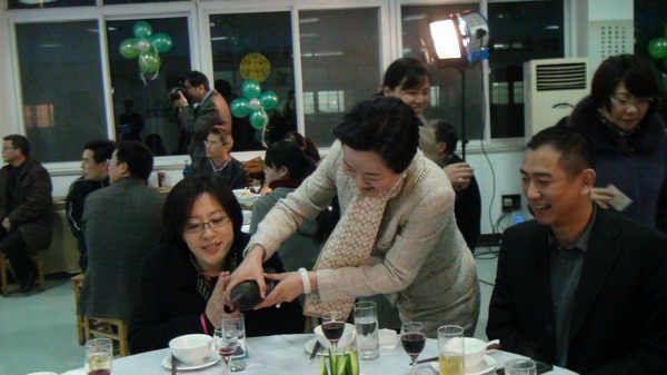晚宴中,合影留念:左起 田伟琴总经理、陶剑虹总编、朱俐安教授、冯萍总监