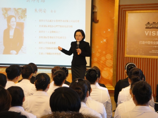 玛琪综合化会所的高管们正在接受朱教授的指导